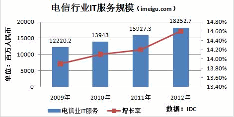 據(jù)IDC統(tǒng)計,中國電信(CHA,51.08,+0.79%)行業(yè)IT規(guī)模從2009年的122億元增長到2012年的182億元;復(fù)合增長率14.5%。