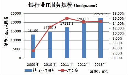 IDC的統(tǒng)計數(shù)據(jù)還顯示,銀行業(yè)IT服務(wù)市場規(guī)模將從2009年的131億元增長到225億元;實現(xiàn)14.5%的復(fù)合增長。