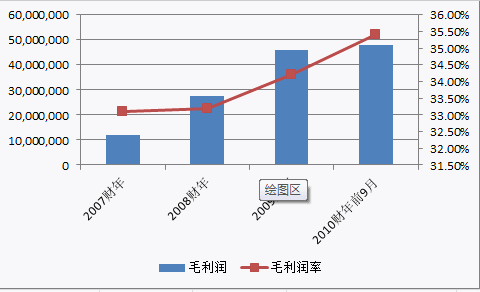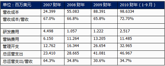 2007年以來,軟通動力的毛利潤逐年增長,從2007年的1029萬美元增加到2009年的4600萬美元;2010年前三季度利潤達(dá)到4786萬美元;其毛利率也從2007年的28.2%提高到2009年的34.2%。