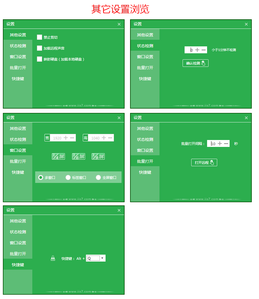 3、為了讓界面更美觀,將分辨率、狀態(tài)檢測、批量開啟間隔等統(tǒng)一在“其他設置按鈕”中。