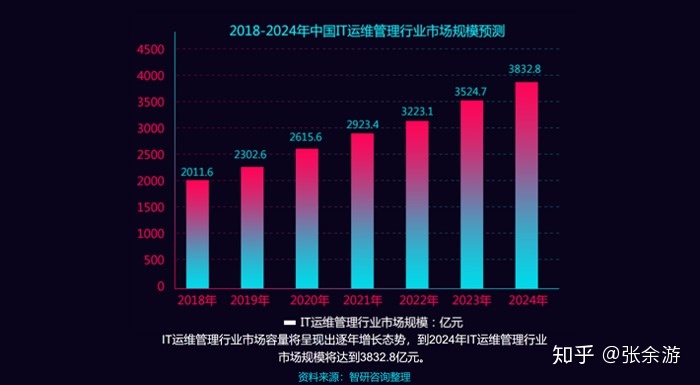 以上是我們列出的IT運維人員的能力要求或工作內(nèi)容。再來看看2020年IT運維市場規(guī)模。2020年,越來越多的企業(yè)開始擁抱互聯(lián)網(wǎng),利用互聯(lián)網(wǎng)開展“無接觸”。業(yè)務(wù)方面,尤其是在2020年初“新冠”疫情的影響下,公司為了生存,全天開通了全員網(wǎng)上辦公、業(yè)務(wù)網(wǎng)上辦理,也為企業(yè)開啟了線上業(yè)務(wù)常態(tài)化;借助互聯(lián)網(wǎng),根據(jù)權(quán)威機(jī)構(gòu)的公告:“這一切將產(chǎn)生約100萬個相關(guān)技術(shù)開發(fā)職位和約100個it運維技術(shù),000 IT運維崗位。到2024年,IT運維行業(yè)市場容量將呈現(xiàn)逐年上升趨勢。到2024年IT運維管理行業(yè)年市場規(guī)模達(dá)到3832.8億元。附:IT運維學(xué)習(xí)路線圖,感興趣的朋友可以關(guān)注,自學(xué)。
