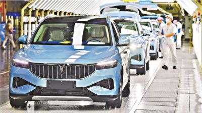 6月30日,智能新能源SUV藍途FREE在武漢經濟技術開發區藍途汽車智能制造基地生產線上。